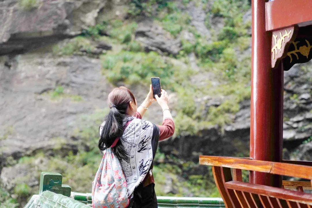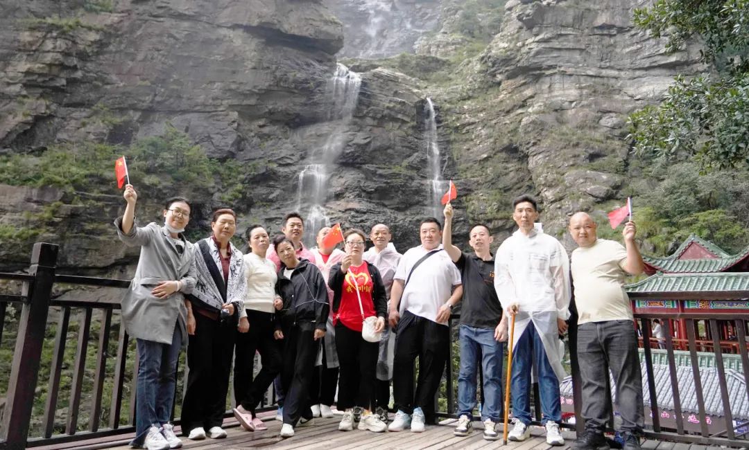 第四天清晨,湘聯家人們踏上了前往三疊泉瀑布的旅程。山路蜿蜒曲折,陡峭難行,對團隊的體力與毅力提出了嚴峻的挑戰。但這絲毫沒有影響大家向上的信念。大家展現出了“一群人、一輩子、一條‘芯’、一根線”的湘聯四一精神,團結協作,互相鼓勵,奮力向上,攜手登上三疊泉瀑布,為這段旅程劃上了美滿的句號。