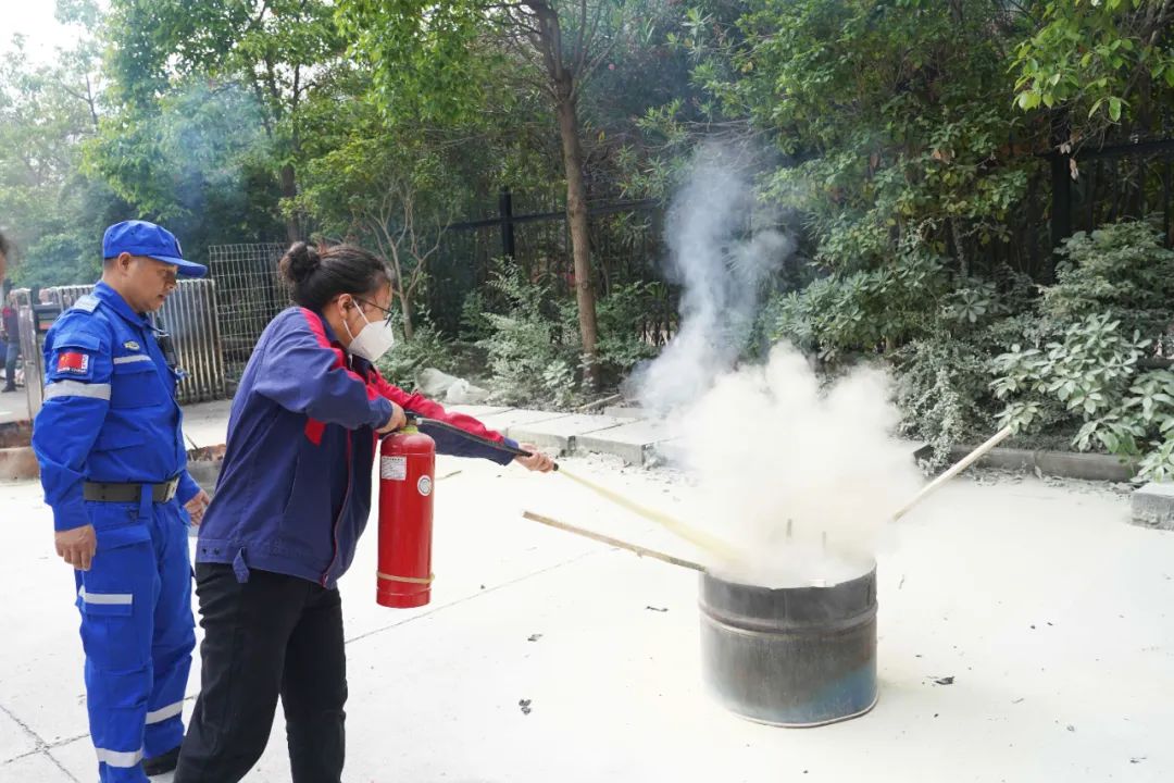 本次演練以實操為主,為確保所有員工具備基本消防能力,每一位員工都在專業(yè)消防隊員的指導下,完成了使用滅火器撲滅火堆、消防水槍對接等實際操作,切實增強員工的自防自救能力。