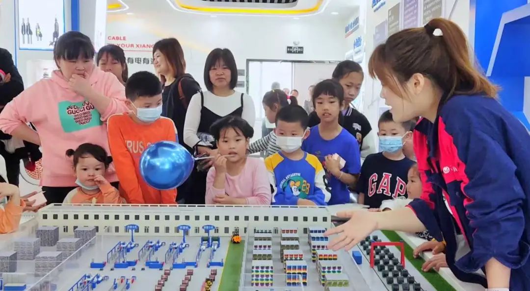 為了幫助孩子們更好地理解電纜電線制造,本次活動特意安排了展廳參觀環節,在展廳,通過樣品展示和講解,湘聯寶貝們能夠直觀的了解電纜電線的制造工藝與流程,對爸爸媽媽的工作有了初步的認識與感知。當得知爸爸媽媽的工作成果被用于醫院、景區、大型商場等各種場所建設,為大家點亮燈火,傳遞光明時,小朋友們對爸爸媽媽的工作更加崇敬。