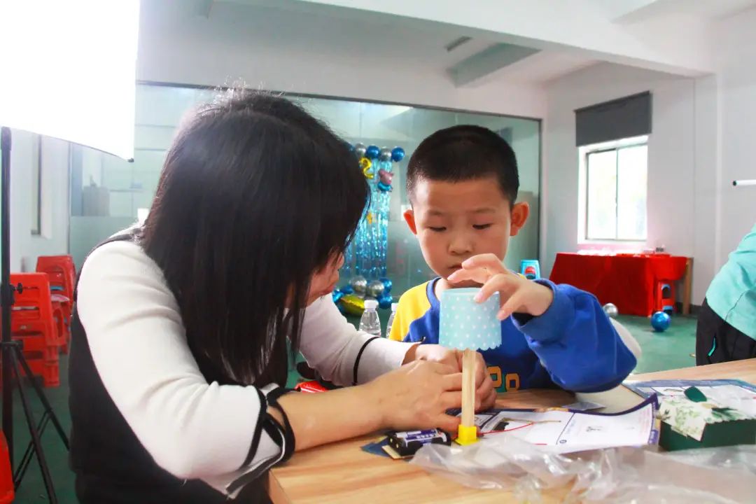 科學實驗是科學啟蒙的重要途徑之一,結合電力傳輸知識,本次活動還準備了“為愛發電”科學實驗挑戰,以科學實驗的方式培養湘聯寶貝們的想象力和創造力,同時也能夠促進親子之間的互動與交流。當一盞盞小臺燈組裝完成,小朋友們和家長的臉上都洋溢著燦爛的笑容。